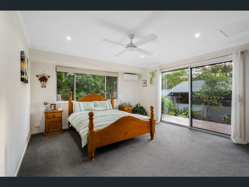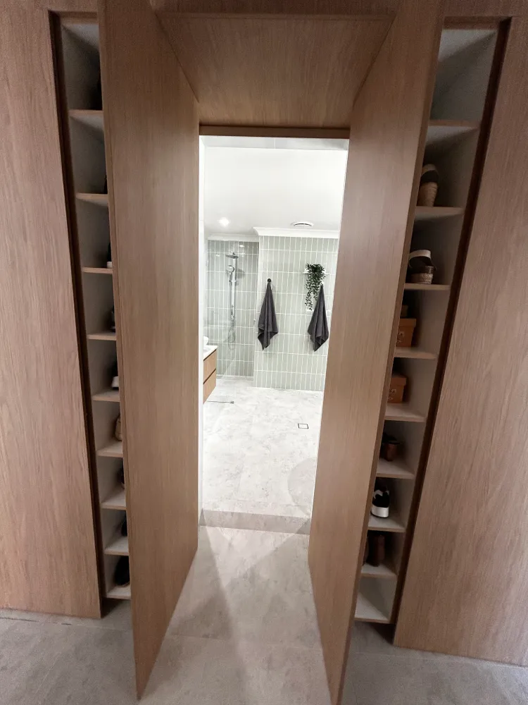 Leading to both the ensuite and walk-in robe, these hidden features add a playful and functional element to the design. The neutral tones and clean lines make this bedroom a calming retreat, perfect for unwinding after a long day.
