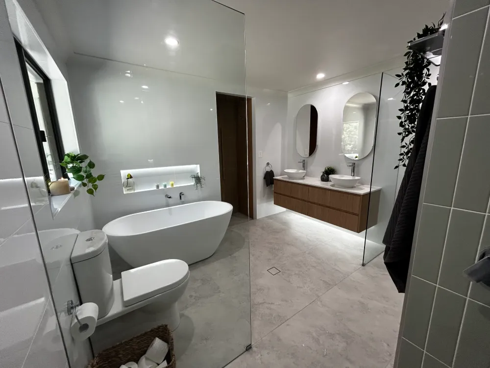 A luxurious centrepiece, complete with a tiled wall alcove for added sophistication. This space is a true haven of relaxation, blending contemporary design with spa-like comfort.