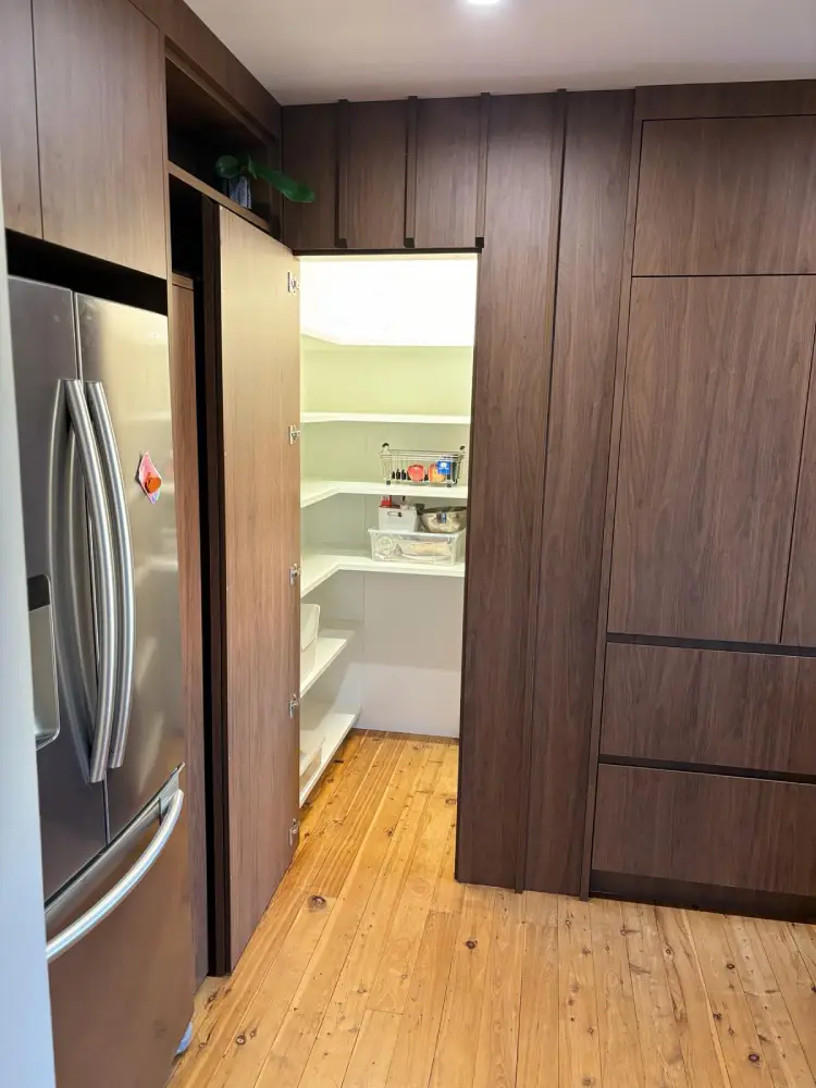 The client was delighted with their new kitchen, particularly the seamless blend of aesthetics and usability. Features like the hidden pantry and pocket doors have quickly become their favourites, proving that great design is all in the details.